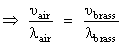 Sound wave travel at 350 m/s through a warm air and at 3500 m/s through brass. Thewavelength of a 700 Hz acoustic as it enters brass from warm air