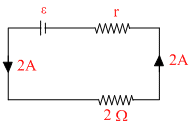 A current of 2 A flows through 2Ω resistor when connected across a batery. The same battery supplies current of 0.5 A when connected acros a 9Ω resistor. The internal resistance of the battery is
