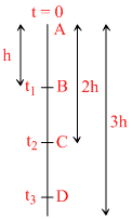 A, B, C and are points in a vertical line such that AB = AC = CD. If a body falls from rest A, then the times of descend through AB, BC and CD are in the ratio :-