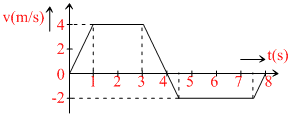 Displacement = 1/2 [4 + 2] × 4 - 1/2 [4 + 3] × 2