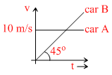 Initially car A is 10.5 m ahead of car B. Both start moving at time t = 0 in the same direction along a straight line . The velocity time graph of two cars is shown in figure. the time when car B will catch the car A, will be : -