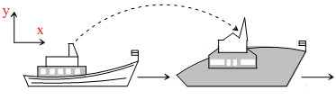 From a motorboat moving downstream with a velocity 2 m/s respectest to river, a stone is thrown. The ston falls on an ordinary boat at the instant when the motorboat collides with the velocity of the ordinary boat respect to river is zero. The river flow velocity is given to be is given to be 1 m/s The initial velocity vector of the stone with respect to earth is : -
