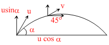 A projectile is projected angle (α > 45o) with an initial velocity u. The time t, which its magnitude of horizontal velocity will equal the magnitude of vorticity is : -