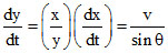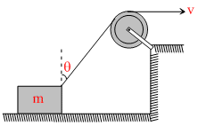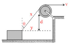 A black is dragged on a smooth plane with the help of a rope which moves with a velocity v as shown in figure. The horizontal velocity of the block is :