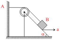 A weightless inextensible rope rest on a stationary wee forming an angle with the horizontal. One end moving to the rope is fixed on the wall at point A. A small is attached to the rope at point B. The wedge starts moving to the right with a constant acceleration a. The acceleration of the load is given by :