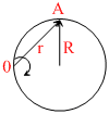 A particle A moves along a radius R = 50 cm so that its radius vector r relative to the point O (figure) rotates with the constant angular velocity ω = 0.40 rad/s. Then modulus of the velocity of the particle and the modulus of its total acceleration will be