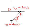 Two boats A and B are moving along perpendicular paths in a still lake at night. Boat A move with a speed of 3m/s and boat B move with a speed of 4 m/ in the direction such that they collide sometime, At t = 0, the boats are 300 m part, The ratio of distance traveled by boat A to the distance traveled by boat B at the instant of collision is : -