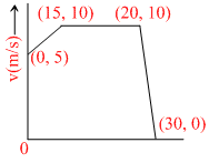 The figure shown the velocity time graph of a particle which moves along a straight line staring with velocity at 5 m /sec and coming to rest at t = 30 as. Then : -