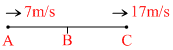 A particle moving along a straight line with uniform acceleration has velocities 7m /s at A and 17 m/s at C. B is the mid-point of AC. Then : -