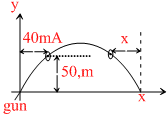 A gun is set up in such a way that the muzzle is at ground level as in figure. The hoop A is located at a horizontal distance 40 m from the muzzle and is 50 m above the ground level. Shell if fired with initial horizontal component of velocity as 40 m/s. Which of the following is are correct ?