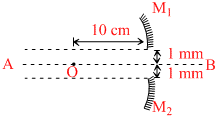 A concave mirror of focal length 20 cm is cut into two parts from the middle and two parts are moved perpendicularly by a distance 1 mm from the previous principle axis AB. the distance between the image formed by the two parts is :