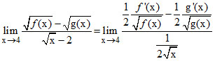 If f(4) = g(4) = 2 ; f′(4) = 9 ; g′(4) = 6 then