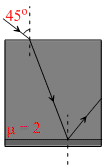 Bottom face of the glass cube is solved as show. A ray light is incident on top face of the cube as shown deviation of the ray when it comes out of the glass cube.