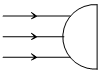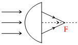 A par axial beam is incident on a glass (n = 1.5) hemisphere of radius R = 6 cm in air as shown the distance of point of converge F from the plane surface of hemisphere is : -