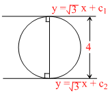 y = √3 x + c1 & y = √3 x + c2 are two parallel tangents of a circle of radius 2 units, then c1 - c2| is equal to -