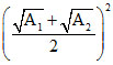 A lens is placed between a source of light and a wall. It forms images of area A1 and A2 on the wall, for its two different positions. The area the source of light is :