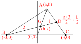 B and C are fixed points having co-ordinates (3, 0) and (-3, 0) respectively. If the vertical angle ᐃBAC is 90o then the locus of the centroid of the ABC has the equation -