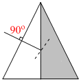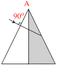 A ray of light normally on the first refracting face of the prism of refracting angle A. The ray of light comes out at grazing emergence. If one half of the prism (shaded position) is knocked off, the same ray will :-