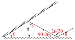 Two mirrors are inclined at an angle as shown in the figure. light ray is parallel to one of the mirrors. The ray will start retracting its path after third reflection if
