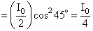 A beam of unpolarised light of intensity Io is passed through a polaroid A and then through another polaroid B which is oriented so that its principal plane makes an angle of 45o relative to that of A. The intensity of the emergent light is :-