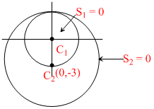 S1 : x2 + y2 = 9 ⇒ C1(0, 0), r1 = 3