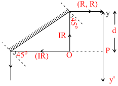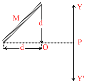 Field of view of image is decided by the reflected rays.As we can see that the reflected rays from the extreme end points of mirror at a height ‘d’ from P and below P all points on Py’, Hence (C)
