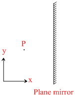 Shown plane mirror is lying in y-z plane . A particle P has velocity