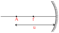 An infinitely long rod lies along the axis of a concave mirror of focal f. length f. The near end of the rod is at distance u > f from the mirror the mirror. Its image will have a length -