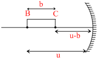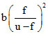 A short linear object of length b lies along the axis of a concave mirror of focal length f, at a distance u from the mirror. The size of the image is approximately-