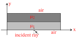 Two thin slabs of refractive indicesμ2 and μ2 are placed parallel to each other in the x - y plane. If the firection of propagation of a ray in the two media are along the unit vectors