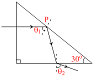 A.The exit angle θ2 of the ray is sin-1 (5/8)