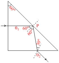 B.The exit angle θ2 of the ray is sin-1