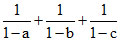 If the lines ax + y + 1 = 0, x + by + 1 = 0 & x + y + c = 0 where a, b & c are distinct real numbers different from 1 are concurrent, then the value of