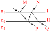 A ray of light incident on a thin film. As shown in figure M, N are two reflected rays and P, Q are two transmitted rays, Rays N and Q undergo a phase change of π. Correct ordering of the refracting indices is :