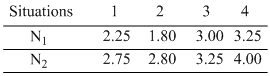 As shown in arrangement waves with identical wavelengths and amplitudes and that are initially in phase travel through different media, Ray 1 travels through air and Ray 2 through a transparent medium for equal length L, in four different situations. In each situation the two rays reach a common point on the screen.The number of wavelength in length L is N2 for Ray and N1 for Ray 1. In the following table, values light at the common point in descending order is :