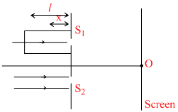 In the figure shown, a parallel of light is incident on the plane of the slits of Young′s double slit experiment. Light incident on the slit, S1 passes through a medium of variable refractive index μ = 1 + ax (where ′X′ is the distance from the plane of slits as shown), upto a distance ′l′ before falling on S1. Rest of the space is filled with air. If at ′O′ a minima is formed, then the minimum value of the positive constant a (terms of l and wavelength ′λ′ in air )is :