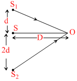 For reflected light waves the two virtual source (images of source in mirrors) at a distance ′3d′ Path difference at O - S2O - S1O