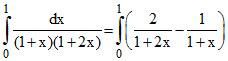 = ln (1 + 2x) - ln(1 + x)|10 = ln3 - ln2 = ln 3/2