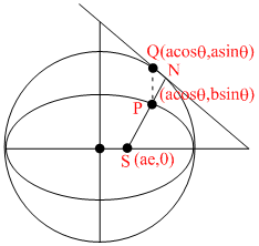 = 1, and its corresponding point Q on the auxiliary circle meet on the line -