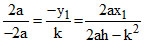 y1 = k and 2ax1 = k2 - 2ah