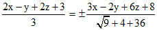 ⇒ 14x - 7y + 14z + 21 = ± (9x - 6y + 18z + 24)