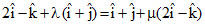 ⇒ 2 + λ = 1 + 2μ, λ = 1, μ = 1