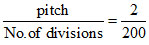 The circular scale of a micrometer has 200 divisions and pitch of 2mm. Find the measured value of thickness of a thin sheet.