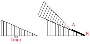 A Brilliant student of Class XII constructed a vernier calipers as shown. He used two identical of inclination 37o and tried to measure the length of line AB is