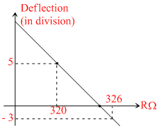 For a post office box, the graph of galvanometer deflection versus R (resistance pulled out of RB) for the ratio 100 : 1 is given as shown. A careless student pulls out two non consecutive values R marked in the graph. Find the value of unknown resistance