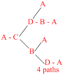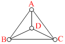A road network as shown in the figure connect four cities. In how many ways can you start from any city (say A) and come back to it without travel ling on the same road more than once ?