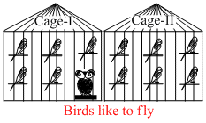 Shalu brought two cages of birds : Cage-I contains 5 parrots and 1 owl and Cage-II contains 6 parrots, as shown. One day Shalu forgot to lock both cages and two birds flew from Cage-I to Cage-II. Then two birds flew back from Cage-II to Cage-I. Assume that all birds have equal chance of flying, the probability that the Owl is still in Cage-I, is -Shalu brought two cages of birds : Cage-I contains 5 parrots and 1 owl and Cage-II contains 6 parrots, as shown. One day Shalu forgot to lock both cages and two birds flew from Cage-I to Cage-II. Then two birds flew back from Cage-II to Cage-I. Assume that all birds have equal chance of flying, the probability that the Owl is still in Cage-I, is -