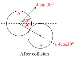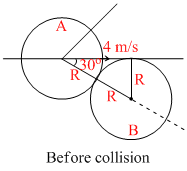 Two smooth balls A and B, each of mass and radius R, have center at (0, 0, R) and (5R, R, R) respectively, in a coordinate system as shown. Ball A, moving along positive x - axis, collides with ball B. Just before the collision, speed of ball A is 4m/s and ball B is stationary. The collision between the balls is elastic.