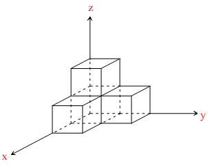 Find the center of mass (x,y,z) of the following stricture of four identical of four identical cubes if the length of each side of cube is 1 unit.
