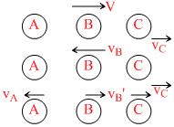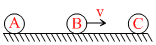 Three balls A, B, and C (mA = mC = 4mB) are placed on a smooth horizontal surface. Ball B collides with ball C with an initial velocity v as shown in the figure. Total number of collisions between the balls will be (All collisions are elastic)